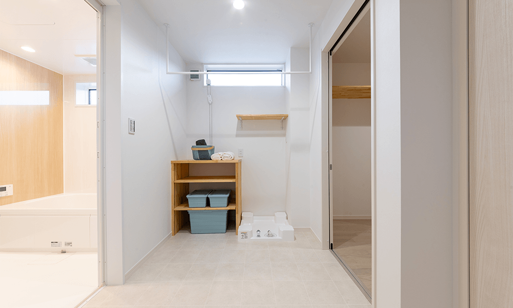 洗濯機・乾燥機・室内干しスペースが一か所にまとまることで、天候に左右されない洗濯環境が整います。