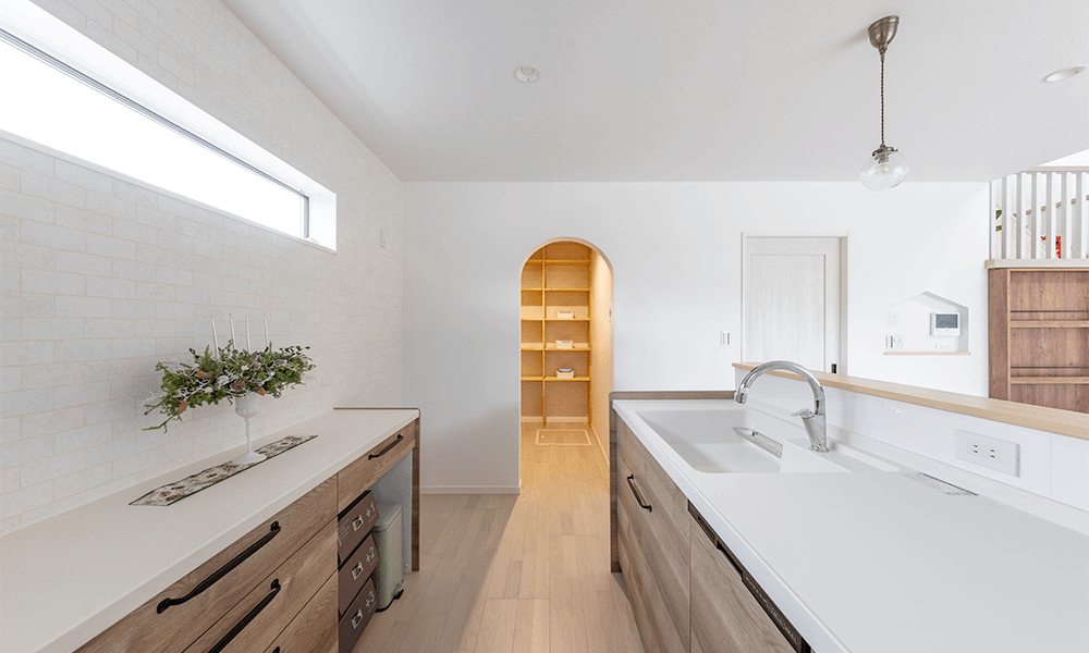 キッチンとパントリーを隣接させれば、買い物帰りの収納や調理中の移動がスムーズになります。