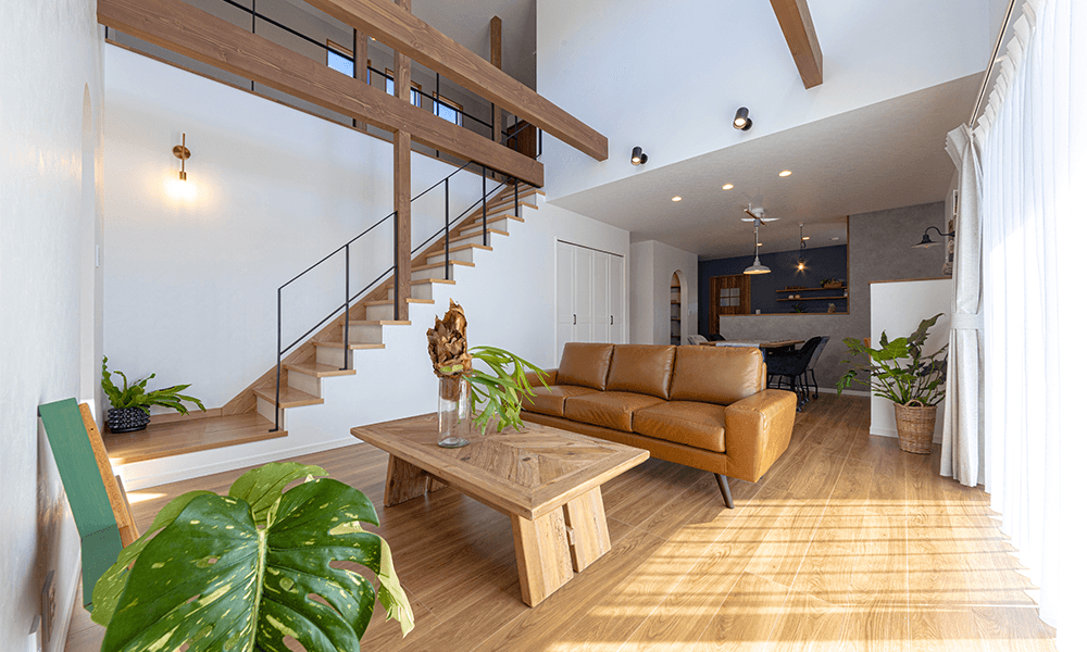 階段を見せるデザインは、空間にアクセントが生まれ、LDKのインテリア性を高める効果もあります。